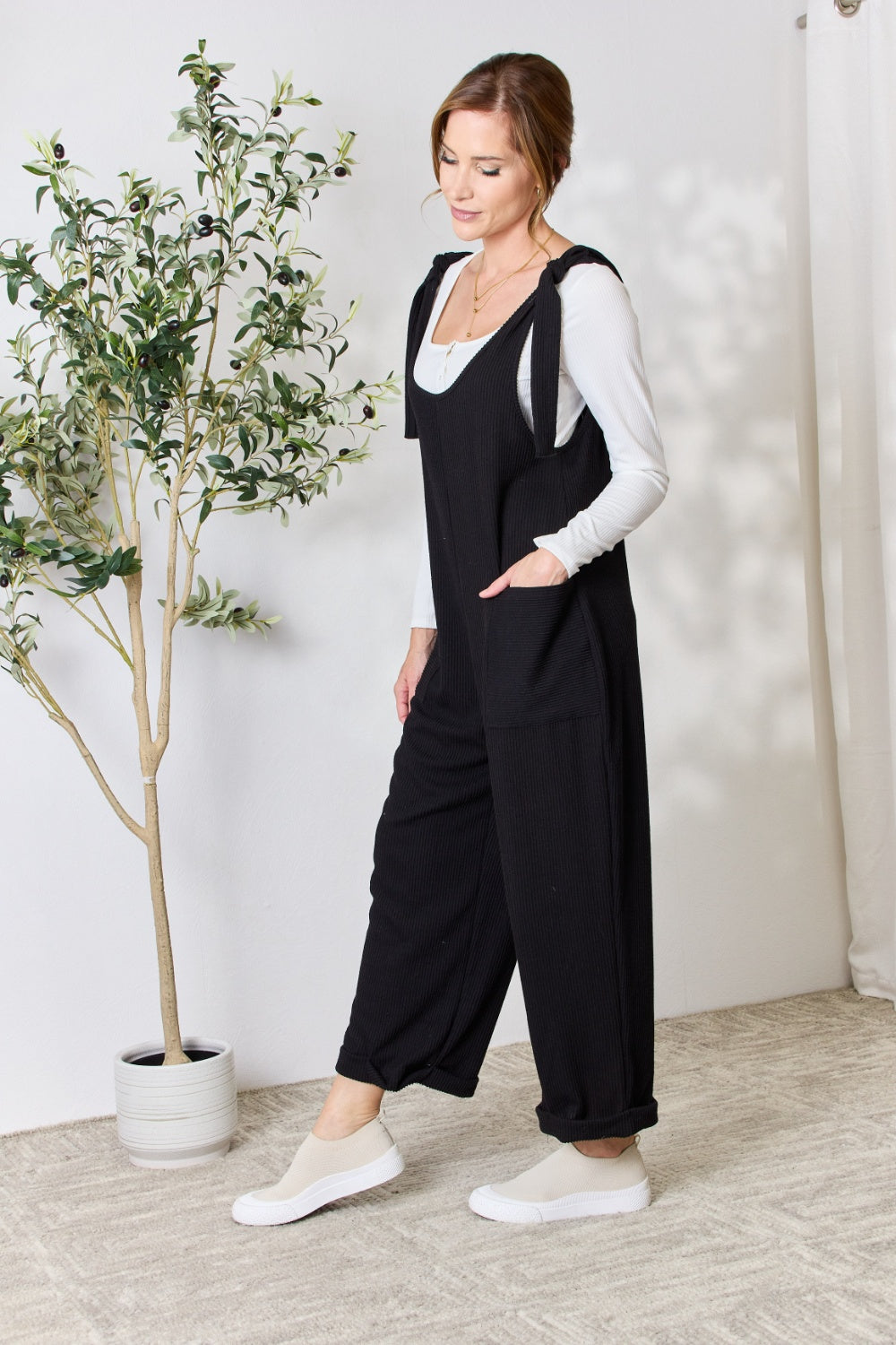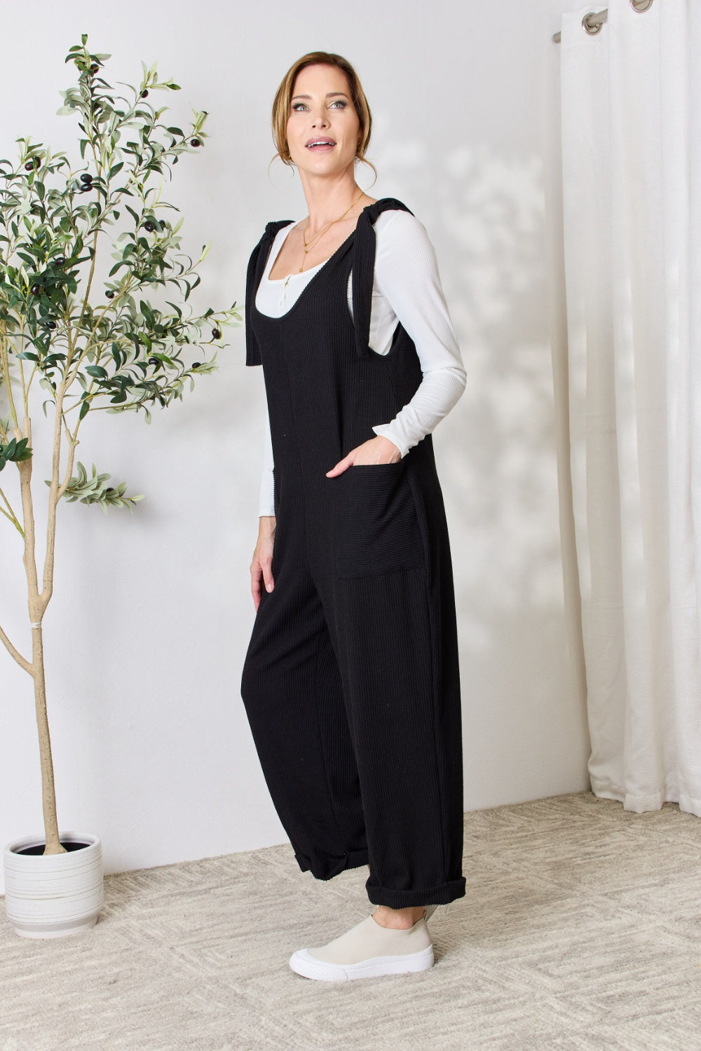 These Overalls are a stylish and on-trend choice. With their ribbed texture and tie shoulder detailing, these overalls offer a unique and fashionable look. The ankle length adds a modern touch, making them a versatile option for various occasions.