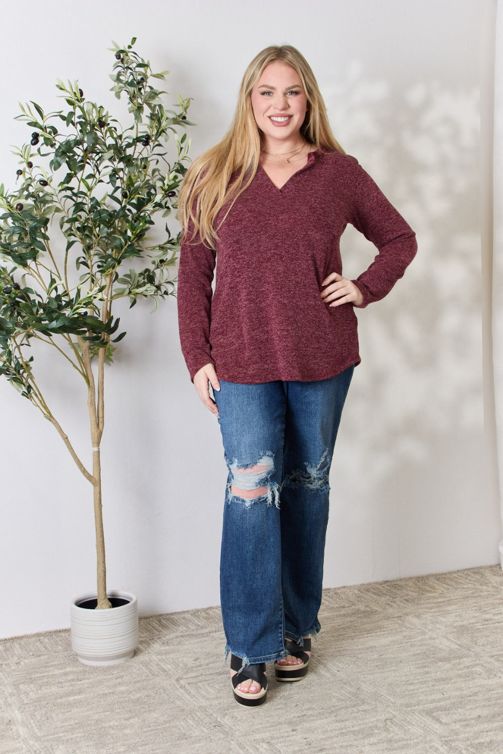 This versatile top is designed to keep you effortlessly chic throughout the day. The timeless notched neckline adds a touch of sophistication, while the convenient pocket detail seamlessly combines fashion with functionality.